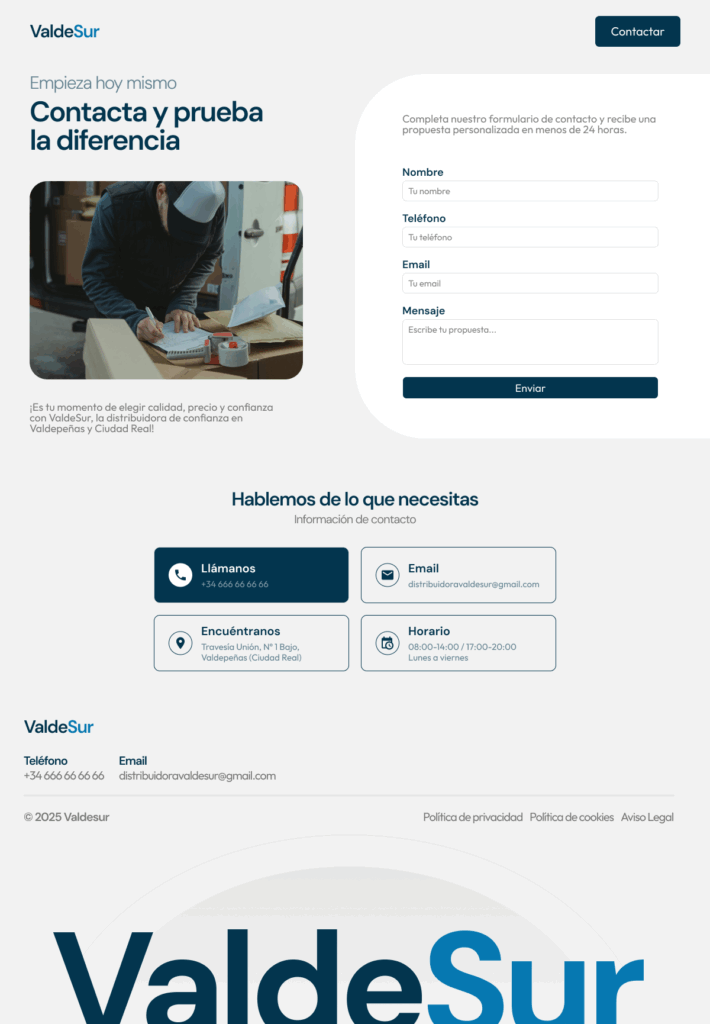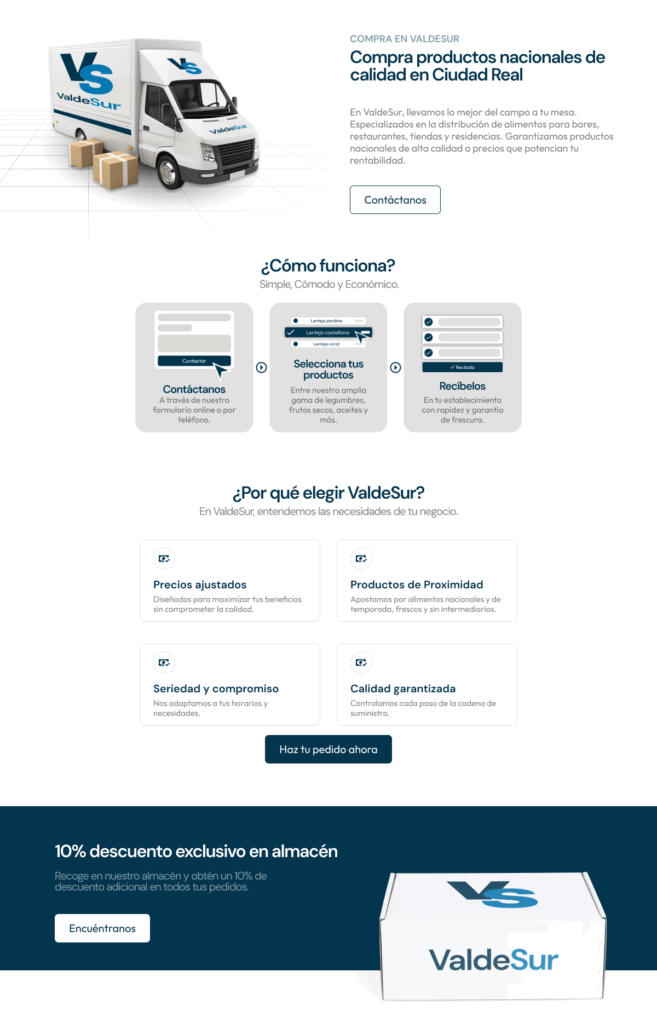 Corporate website for a local food distributor in Ciudad Real, offering bulk food to retailers.